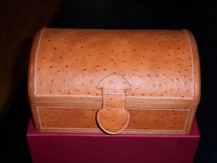 •    Rouleau à bijoux en cuir rouge avec logo